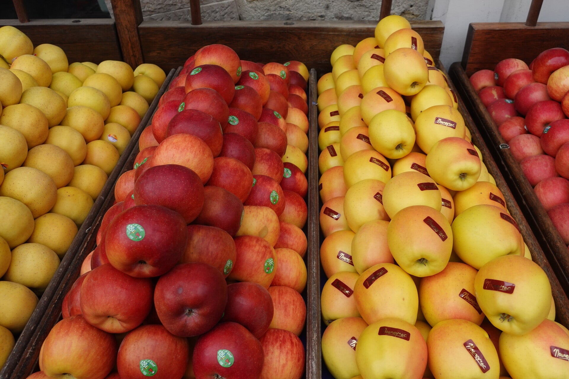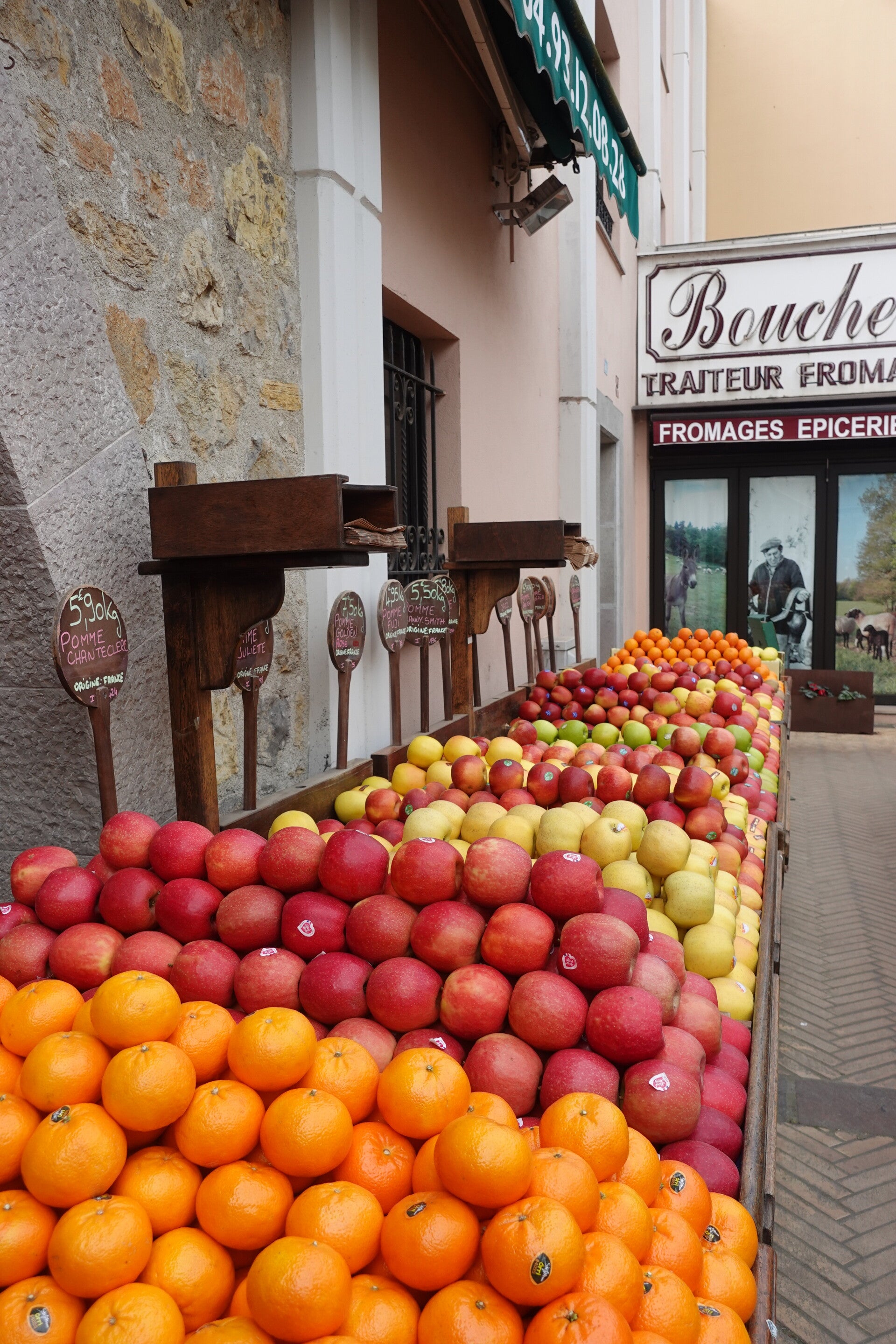 Wie dem auch sei, wir sind beim Gemüseladen „Dumanois Primeurs“ angekommen. Der Laden befindet sich in der Kleinstadt Valbonne in der Nähe von Antibes an der Côte d‘Azur. Schon von weitem weg fällt der kleine Laden auf: Vor dem Eingang stehen verschiedenste Tische auf denen sich Orangen und Äpfel stapeln. Daher Korrektur#1: Es ist nicht ausschließlich ein Gemüseladen, die verkaufen dort auch Obst. Da ist mir der Titel aber zu lang. Obst mag ich aber auch. Was ist jetzt das besondere an Tischen , auf denen sich Äpfel und Orangen stapeln? Sie stapeln sich wortwörtlich. Die Früchte sind alle pyramidenförmig aufgereiht und das in einer absolut peniblen Ordnung. Es fehlt keine Orange, kein Apfel um die Pyramide zu vervollständigen. Ich bin sofort fasziniert. Wie schaffen es die Verkäufer dort trotz des alltäglichen Geschäftstrubels die Struktur beizubehalten? Das muss ich mir näher anschauen. Ich gehe zu den Tischen und mir fällt auf, dass es nicht nur die Äpfel und Orangen sind, die geordnet darliegen: Die Weintrauben und Birnen sind alle mit demselben Abstand zueinander auf einer großen Platte angelegt, die Ananasse (vermutlich importiert) sind strukturiert nebeneinander aufgestellt und die Erdbeeren (tatsächlich nicht importiert (fragwürdig!)) sehen sowieso schick aus - es sind ja auch Erdbeeren, da muss man wenig machen. Beeindruckend, finde ich, und absolut mein Geschmack; nicht nur Nahrungsmittel-technisch.