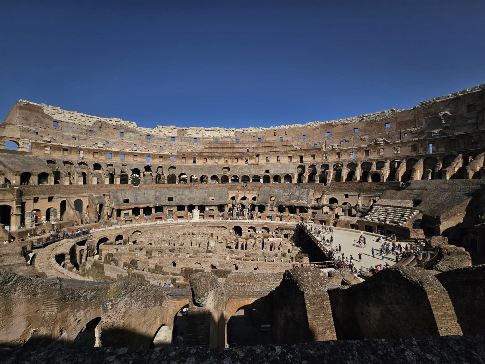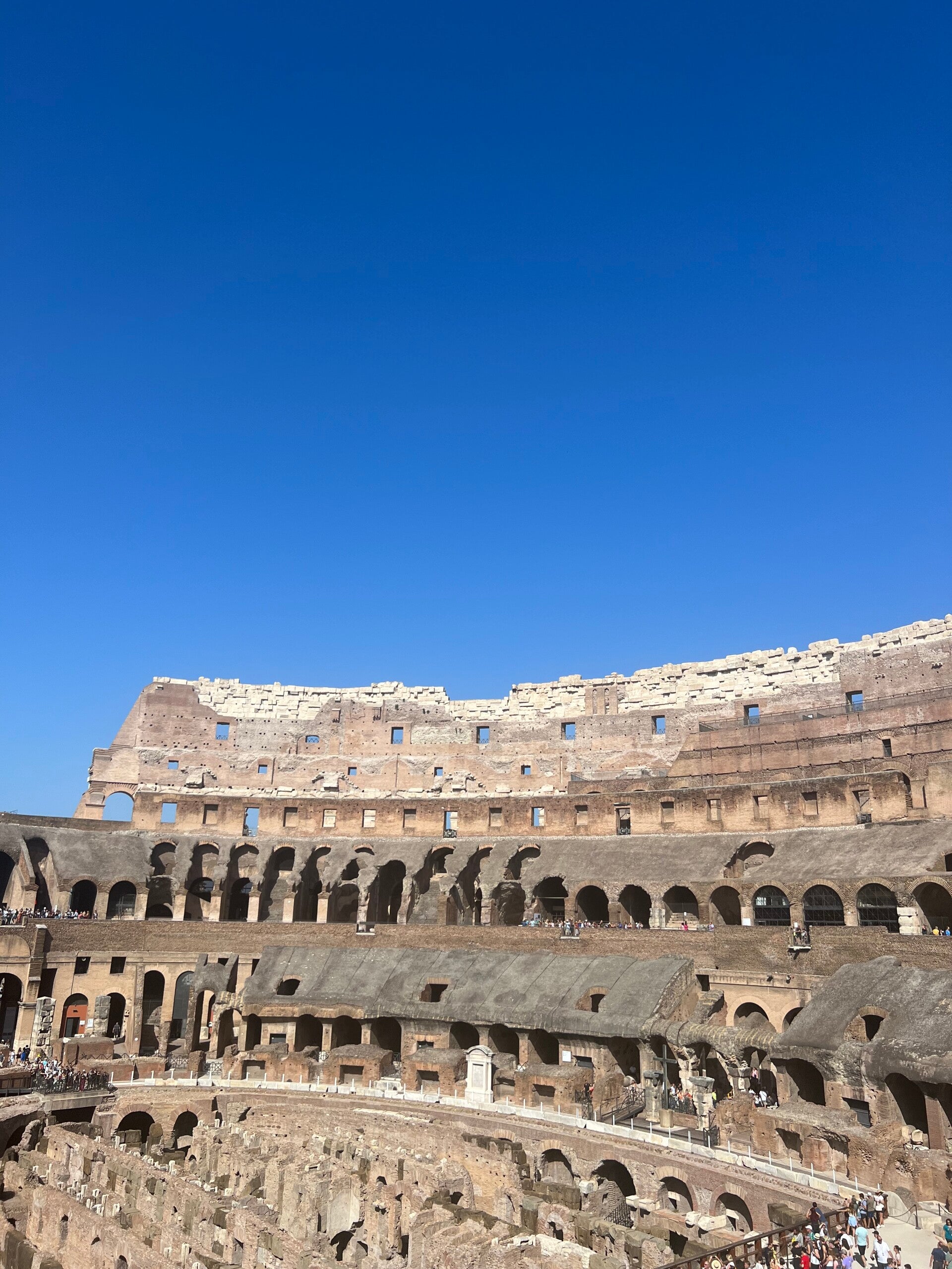 Morgens bin ich erstmal laufen gegangen. Die Sonne ging gegen 7 Uhr auf, sodass ich Rom in einem wunderschönen, lilanen Licht beobachten konnte. Nach dem Frühstück haben wir uns zu Fuß auf den Weg zu San Clemente gemacht, unter der großflächige Hohlräume liegen, in denen früher Menschen gewohnt haben. Anschließend sind wir in das Kolosseum gegangen und konnten uns die beeindruckende Architektur von innen anschauen. Vor allem die Untergrundstruktur, mit der verschiedenste Elemente für Schauspiel und Amusement der Zuschauer möglich gemacht worden ist, ist aufgefallen. Dann ging es für uns auf den Forum Romanum, der den ehemaligen Marktplatz der Römer darstellt. Schließlich sind wir auf den Palatin gestiegen und konnten eine einmalige Sicht auf Rom genießen. Zu dem Zeitpunkt war es dann Nachmittag, ich bin mit meinen Freundinnen erstmal zurück zum Hotel. Später bin ich mit Laurenz, Assil, Helena und Lucia nochmal spazieren gegangen und zum Essen sind dann Magnus und Annik zu uns gestoßen. Ich habe eine super tolle Pasta gehabt, während Assil und Helena leider den nach Gummi schmeckenden Schafskäse unbedingt probieren mussten. Später sind wir dann ohne Magnus, Annik und Laurenz, aber mit Marcel, Jakob, Alexander, Rafael, Marko und Frau Jesgarz noch in die „Blackmarket Hall” gegangen, eine Bar, die Frau Jesgarz von einem früheren Besuch in Rom kannte. Gegen Mitternacht waren wir dann zurück.
