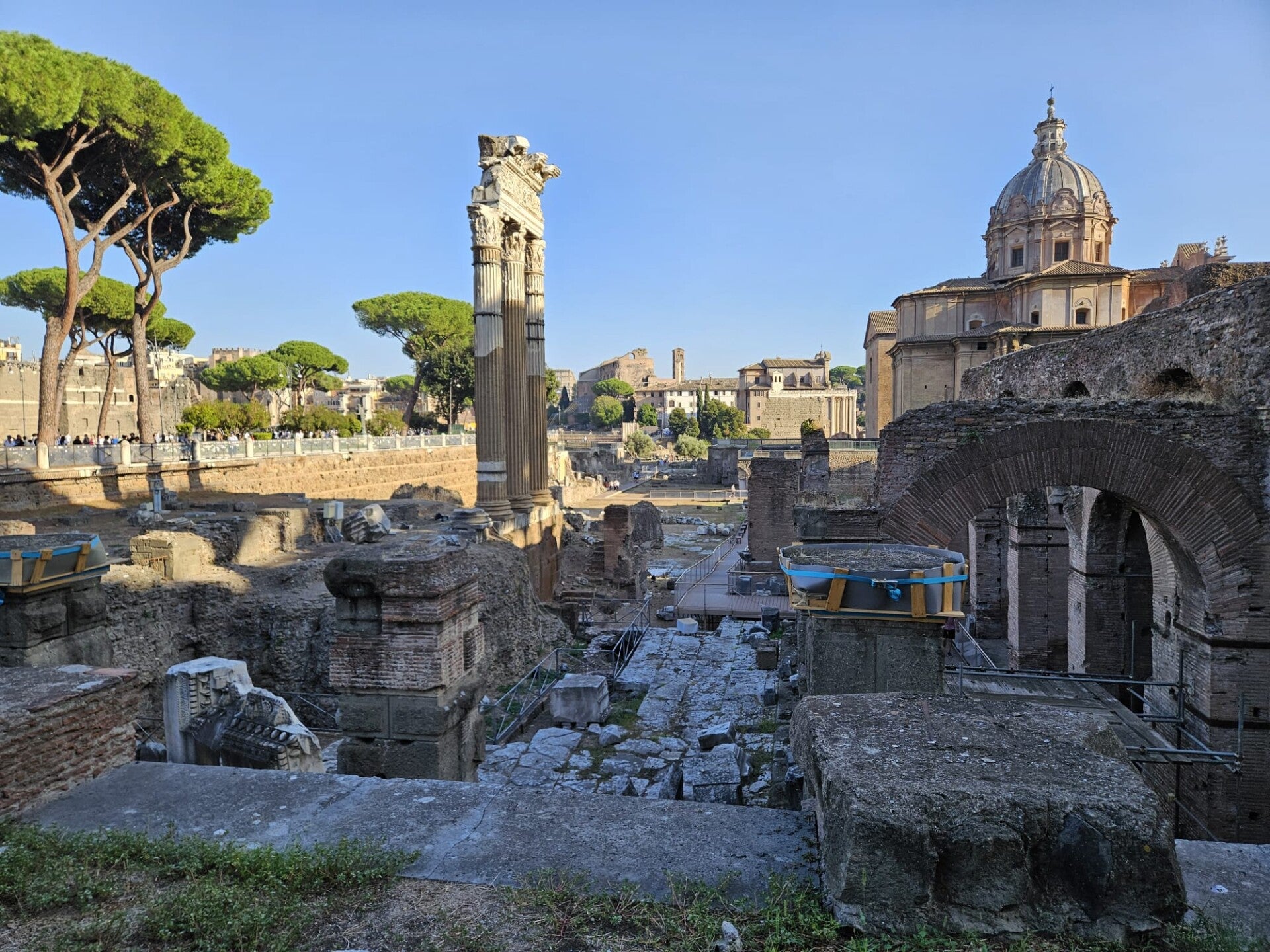 Herr Roeder ist Lateinlehrer und macht bereits seit über 30 Jahren beinahe jedes Jahr diese Romtour mit Schülern des 13. Jahrgangs. Er kennt daher die Stadt wie seine Westentasche, hat aber auf der anderen Seite auch sein striktes Programm und kennt keine Fußschmerzen. Zuerst haben wir die Kirche Santa Maria Maggiore besichtigt, dann Santa Prassede, die Porta Giovanni, die Lateransbasilika, die Piazza Venezia, Kaiserfora zu S. Pietro in vincoli, ein Gang um den Circus Maximus und vorbei am Kolosseum. Dann waren wir alle total erledigt und Herr Roeder hat Gnade walten lassen, sodass das Programm für den Tag beendet war. Wir sind dann erstmal zum Supermarkt gegangen; Ich habe mir Äpfel und Wasser gekauft. Nach einer kurzen Pause sind wir in größerer Gruppe mit Frau Jesgarz essen gegangen.