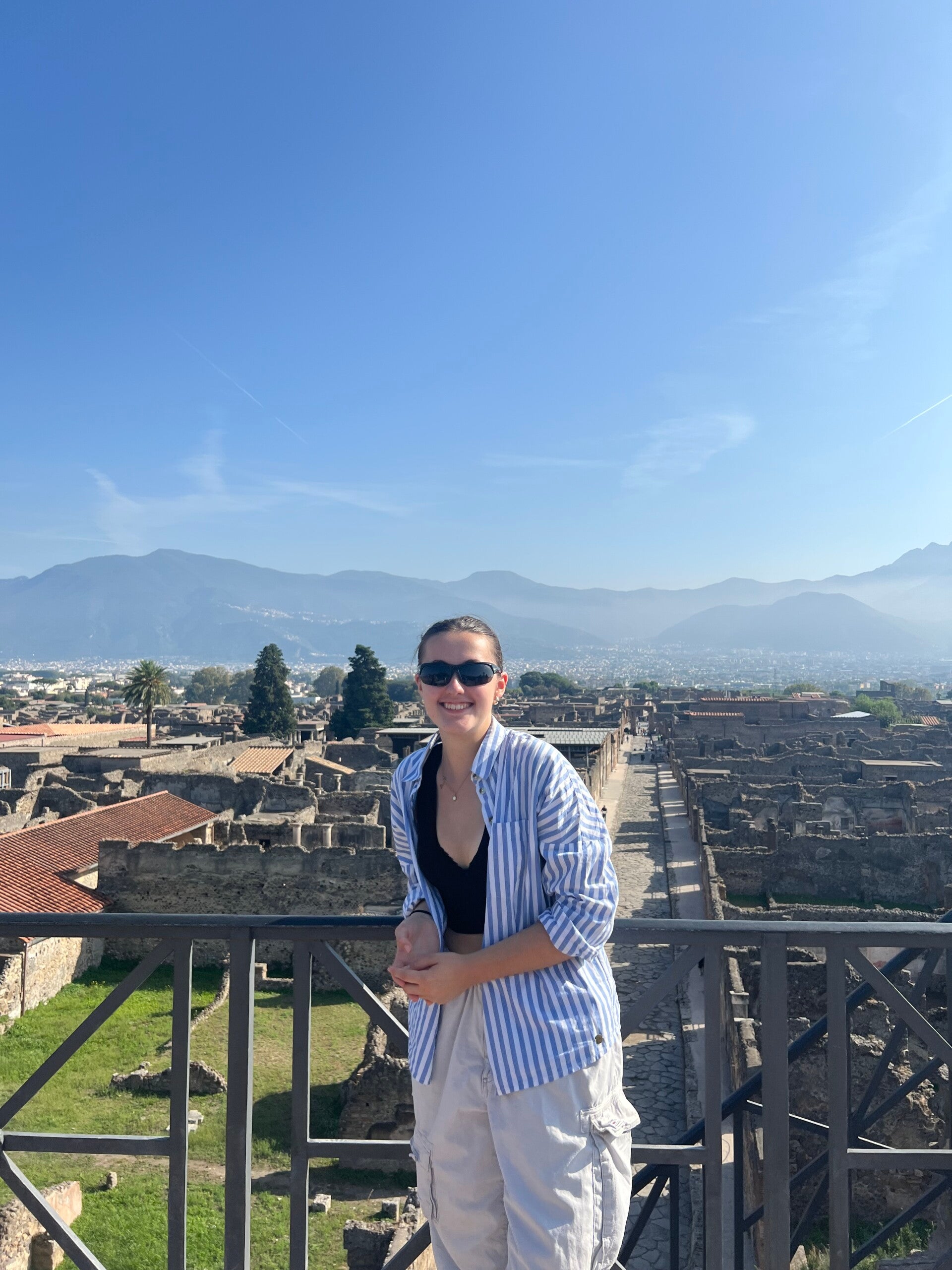 Am Dienstag wollten wir nach Pompei fahren - eine Stadt, die 79 n. Chr. nach dem Ausbruch des Vesuvs von Asche begraben worden ist und erst vor einigen Jahrzehnten wieder ausgegraben wurde. Wir sind dafür 1,5 Std nach Neapel gefahren und anschließend mit einem weiteren Zug nochmal 30 Minuten. Die lange Fahrt hat sich aber auf jeden Fall gelohnt. Vor allem Annik ist sehr begeistert von Pompei und hat sich im Vorhinein sehr auf den anstehenden Besuch gefreut. Interessant ist, dass die Menschen in Pompei in einigen Läden schon Konzepte wie Fast Food hatten. Sie haben Essen vorbereitet und über Löcher und Feuer dann warmgehalten. Wenn jemand das Essen kaufen wollte, haben sie unter die Tecke gegriffen und es dem Kunden gegen Geld gegeben. Ich finde es sehr spannend, dass Konzepte, die wir heute durchführen und selbstverständlich im Alltag sind, so früh schon entwicklet worden sind.